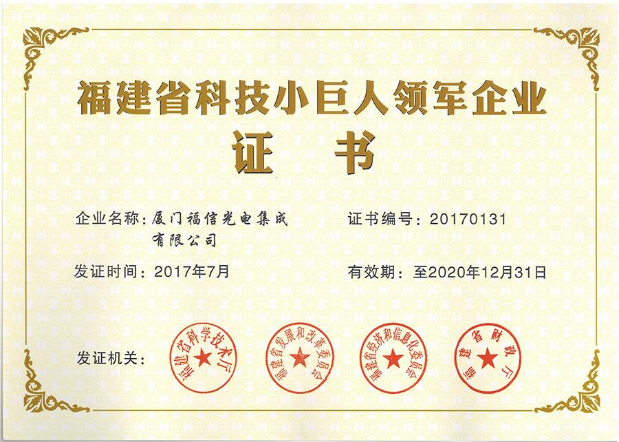 Fujian Province Science and Technology Little Giant Leading Enterprise