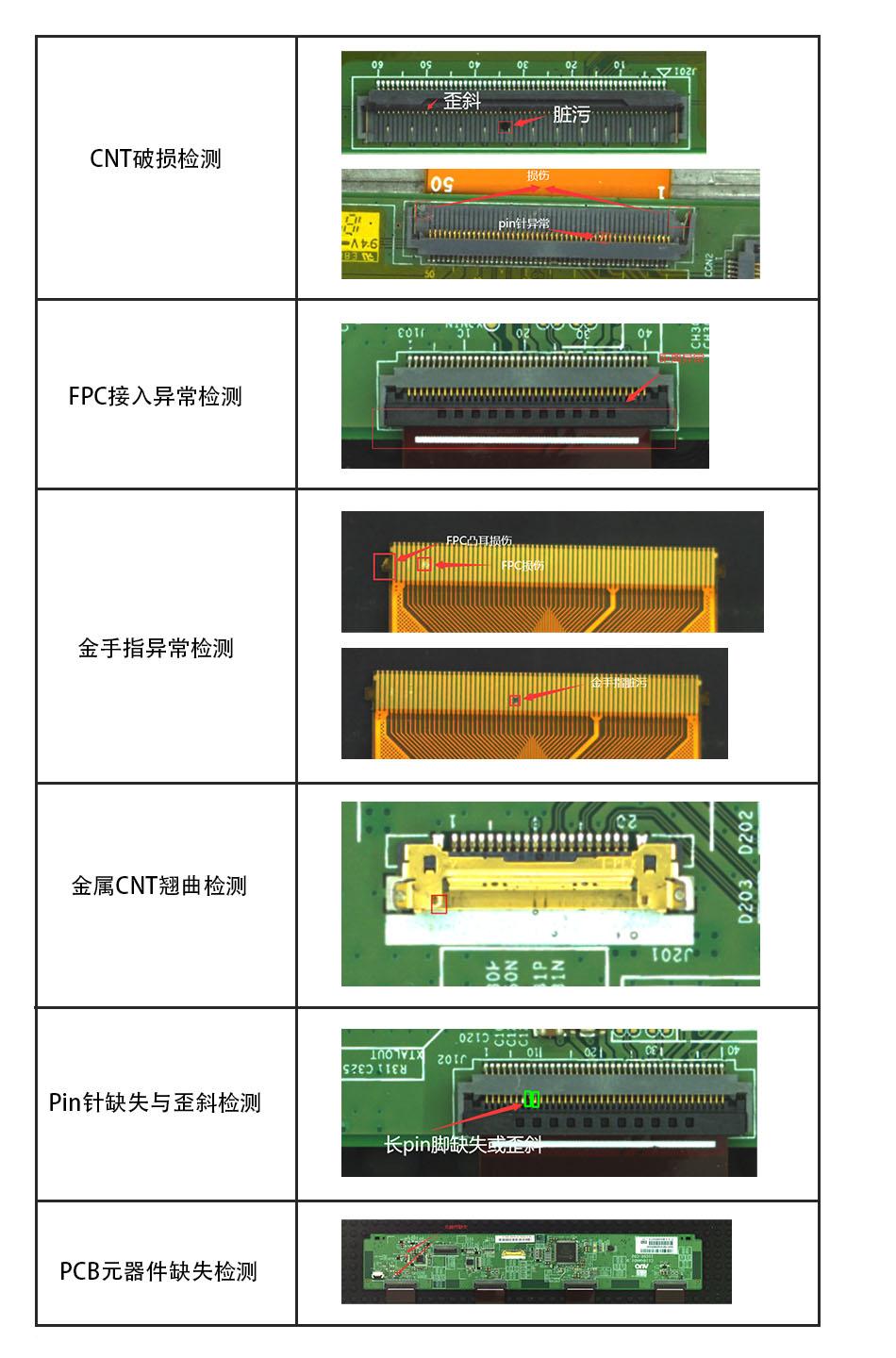 FPC connection abnormality detection, FPC protrusion damage detection;